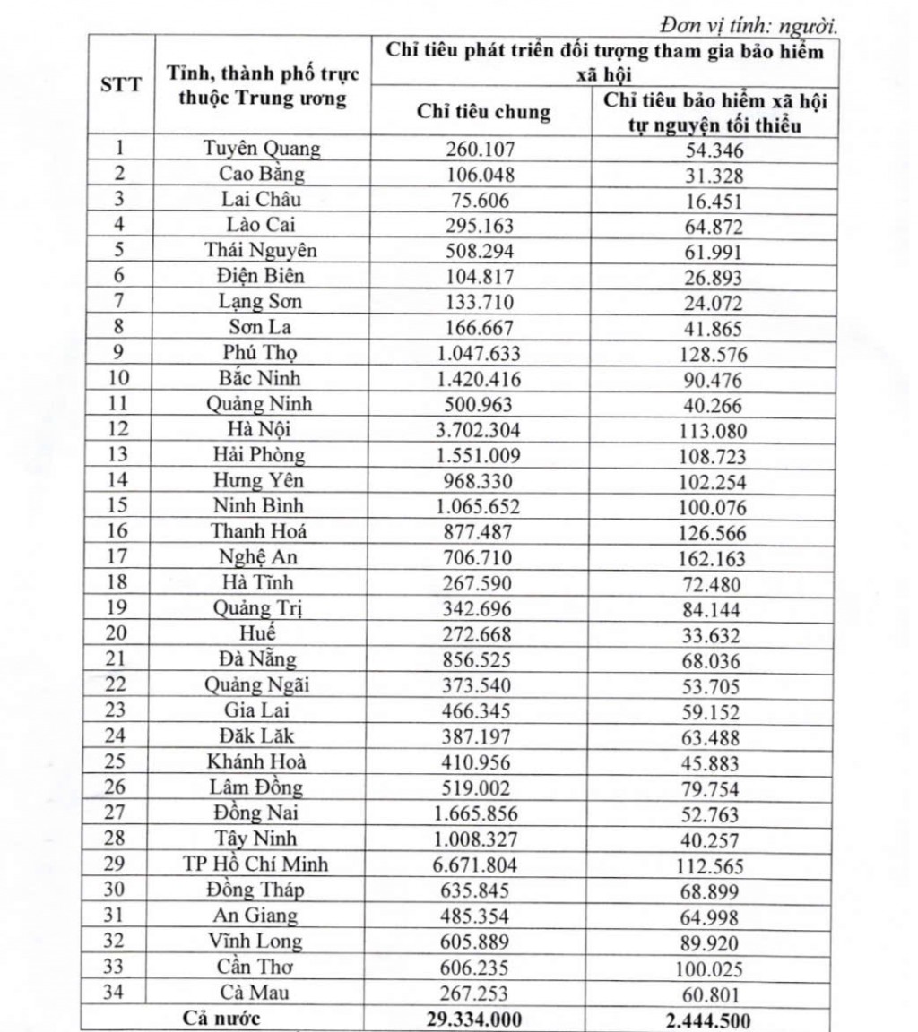 Chính phủ vừa ban hành Nghị quyết số 403/NQ-CP ngày 10/12/2025 giao chỉ tiêu phát triển đối tượng tham gia bảo hiểm xã hội (BHXH) đến năm 2030 cho các tỉnh, thành phố trực thuộc trung ương. Theo đó,...